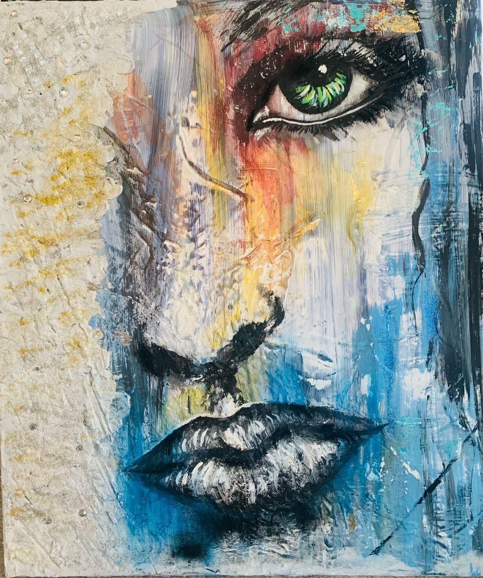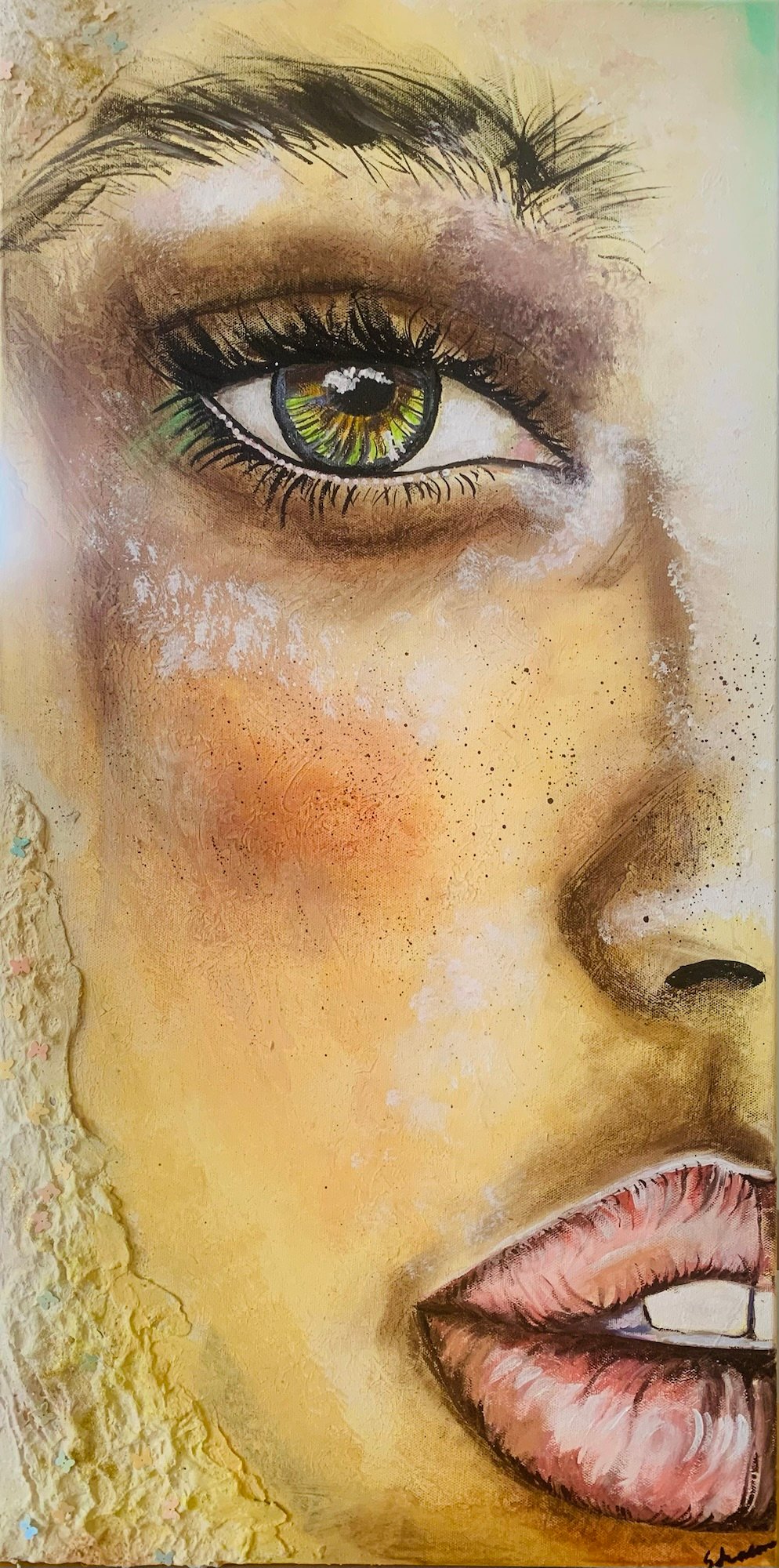 I am an intuitive mixed-media artist creating from the quiet space between the visible and the unseen. Now based in Richterswil, Switzerland, my work blends personal photography, unconventional materials, layered textures, and expressive color to explore resilience, transformation, fragility, and hidden strength within the human experience.
